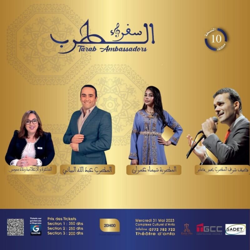 يحيي “سفراء الطرب”، نهاية الشهر الجاري، حفلا طربيا في إطار فعاليات الدورة العاشرة من التظاهرة، بمشاركة مجموعة من الفنانين. ويتعلق الأمر بعبد الله البياتي وشيماء عمران، إضافة إلى المغني يحيى صابر، ضيف الشرف.