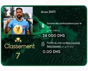 ساهم أنس الزنيتي، حارس مرمى الرجاء الرياضي، في حملة “راجامعانا” لجمع التبرعات من أجل تجاوز الأزمة المالية التي يعيشها الفريق.