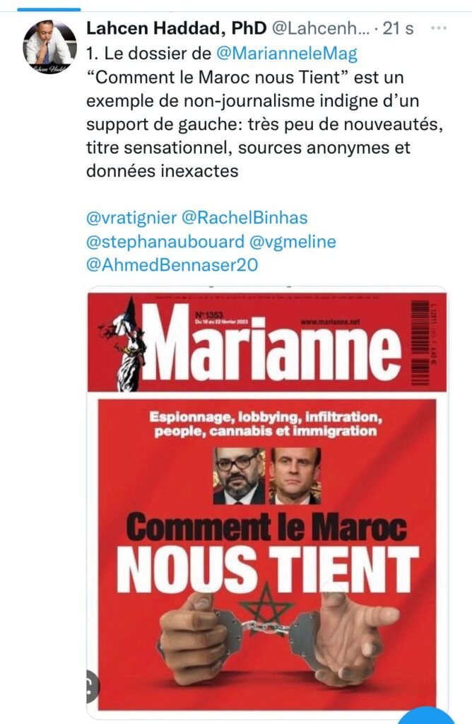 1. Le dossier de @MarianneleMag “Comment le Maroc nous Tient” est un exemple de non-journalisme indigne d’un support de gauche: très peu de nouveautés, titre sensationnel, sources anonymes et données inexactes@vratignier @RachelBinhas @stephanaubouard @vgmeline @AhmedBennaser20 pic.twitter.com/eoaig7XzHY
